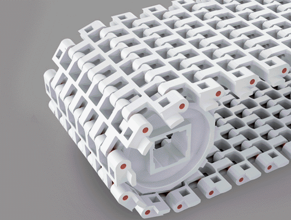 Bandas modulares y accesorios para equipos transportadores.